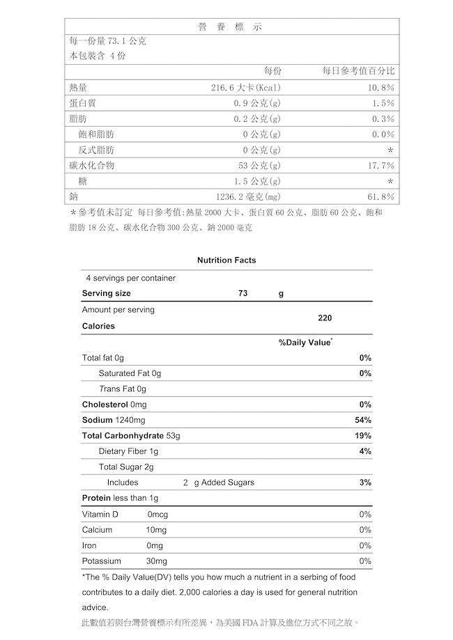 過敏原資訊:本產品含有大豆及其製品,不適合對其過敏體質者食用。生產製程廠房,其設備及其生產管線有處理甲殼類、芒果、花生、奶類、蛋、芝麻、堅果、含麩質穀物、大豆、魚類、亞硫酸鹽類等及其製品。