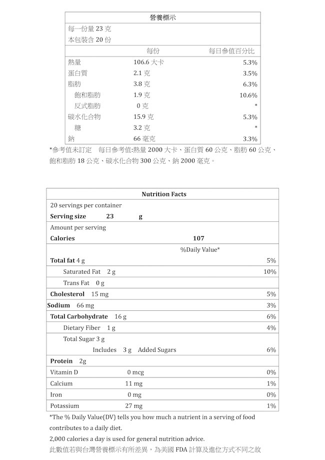 【過敏原資訊】本產品含有麩質穀物、蛋類、奶類。