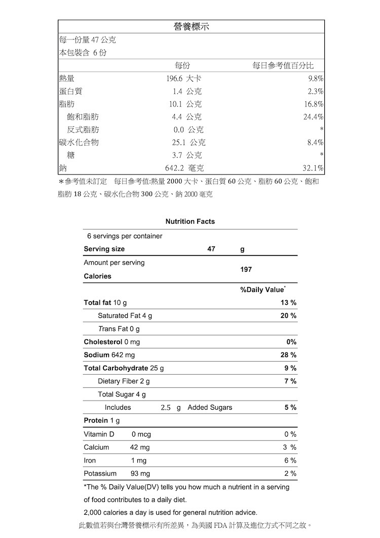 【過敏原資訊】本產品含有大豆、芝麻及其製品,不適合對其過敏體質者食用。生產製程廠房,其設備及其生產管線有處理甲殼類、芒果、花生、奶類、蛋、芝麻、堅果、含麩質穀物、大豆、魚類、亞硫酸鹽等及其製品。