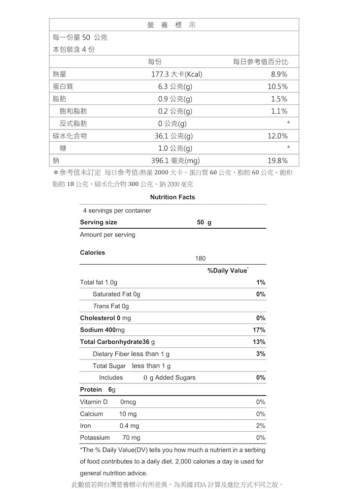 過敏原資訊:本產品含有麩質穀類(小麥)